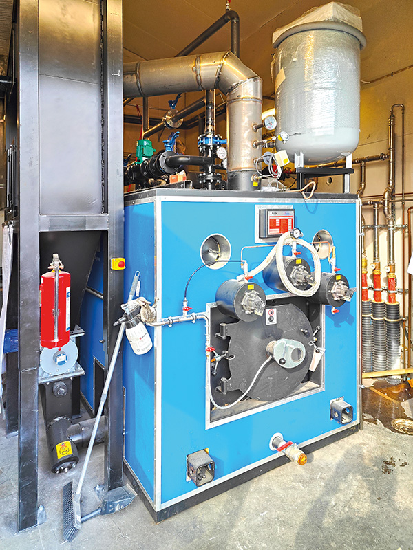 Anlæggets 995 kW Linka H kedel har indbygget trapperist, der sammen med den verdenspatenterede forbrændingsteknologi sikrer optimal udnyttelse af brændslet. Asken transporteres automatisk udenfor anlægget til et separat askerum. Størrelsen af rummet betyder at der kan opbevares en stor mængde aske, og beholdningen skal kun tømmes 1-3 gange om året.