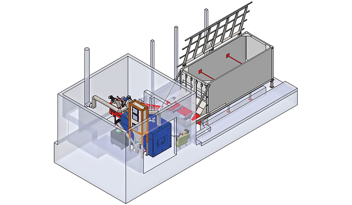 Flisen opbevares i en 20-fods Linka-brændselscontainer, som er udstyret med hydraulisk walking floor og integreret skrabesystem, der kontrolleret fører brændslet frem til kedlen. Containerløsningen er udviklet til fleksibel håndtering af flere biomassetyper og er nem at tilkoble eksisterende systemer.