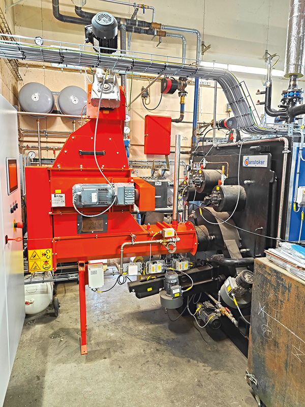 Brændslet – træflis med op til 35 % fugtindhold – tilføres automatisk via stokersnegl og reguleres efter behov via iltmåling (O₂-sensor).